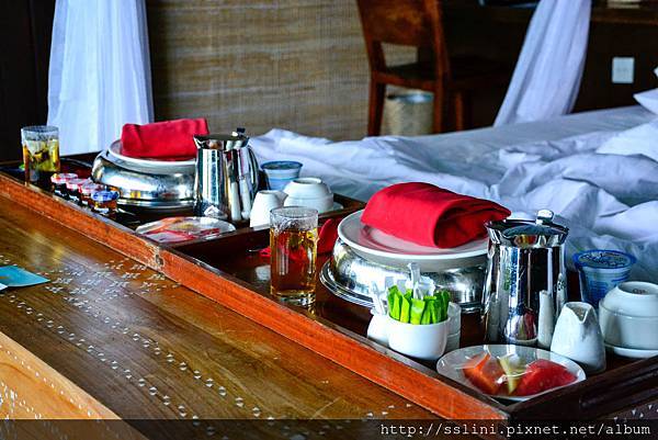 之後沒多久, 昨晚訂的早餐就送到水上屋來囉!